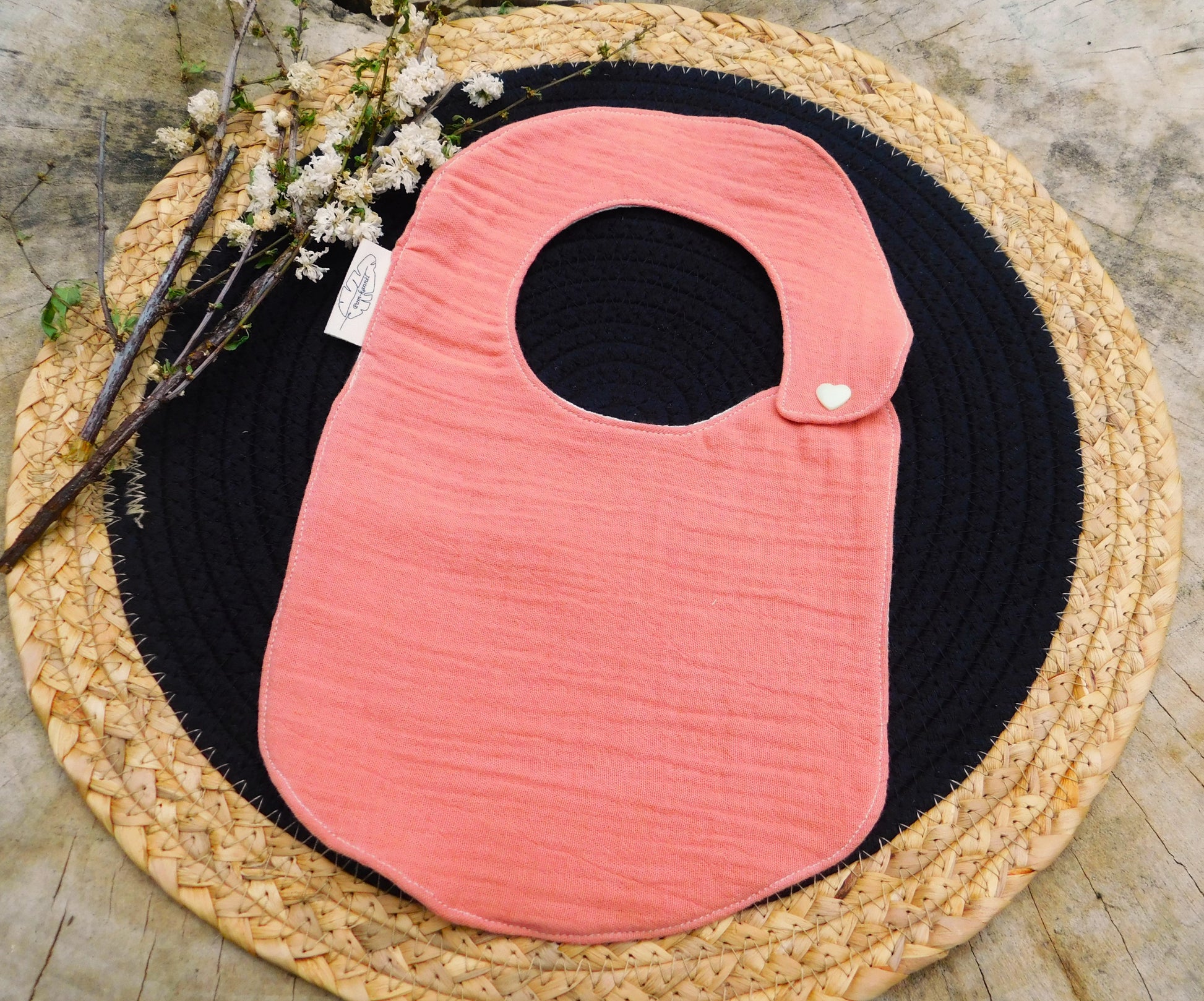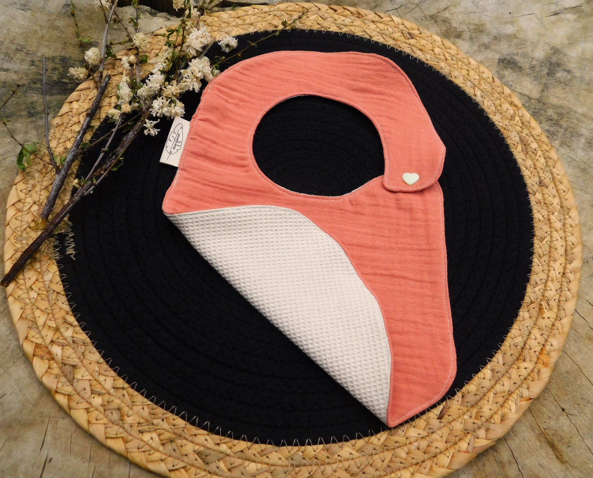 Le Bavoir en double gaze de coton terracotta et nid d'abeille écru est pratique et élégant. Sa fermeture par pression en plastique le rend facile à utiliser. Gardez votre bébé propre et au sec tout en ajoutant une touche de style à ses tenues. Idéal pour les repas et les bavouilles!