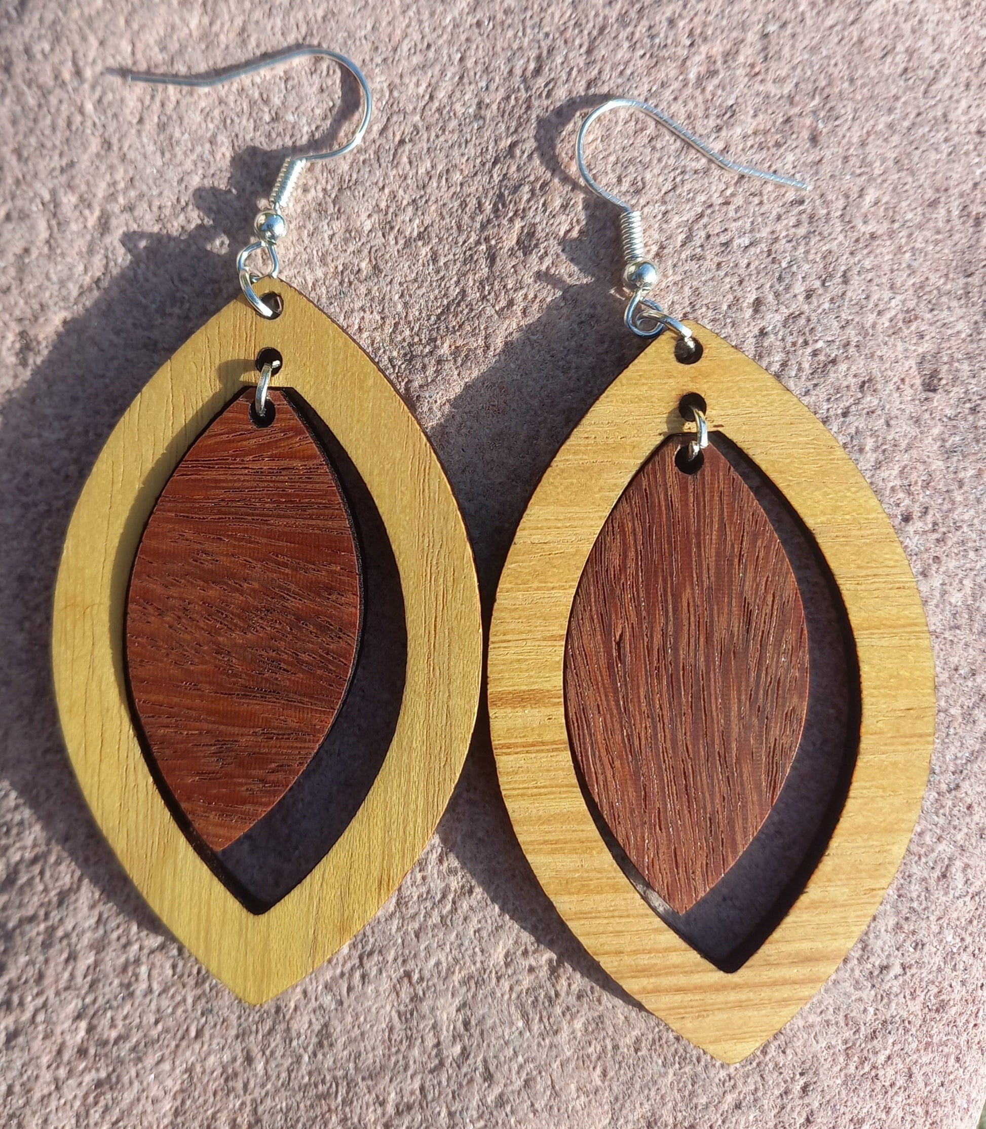 Découvrez notre collection de boucles d'oreilles en bois brut, alliant l'élégance du bois d'acacia et exotique (ipé) à la légèreté des crochets hypoallergéniques en argent et fermoirs en caoutchouc transparent. Mesurant 57 x 37 x 4 mm, ces boucles sont à la fois sobres et tendances, offrant un confort optimal à toutes occasions.