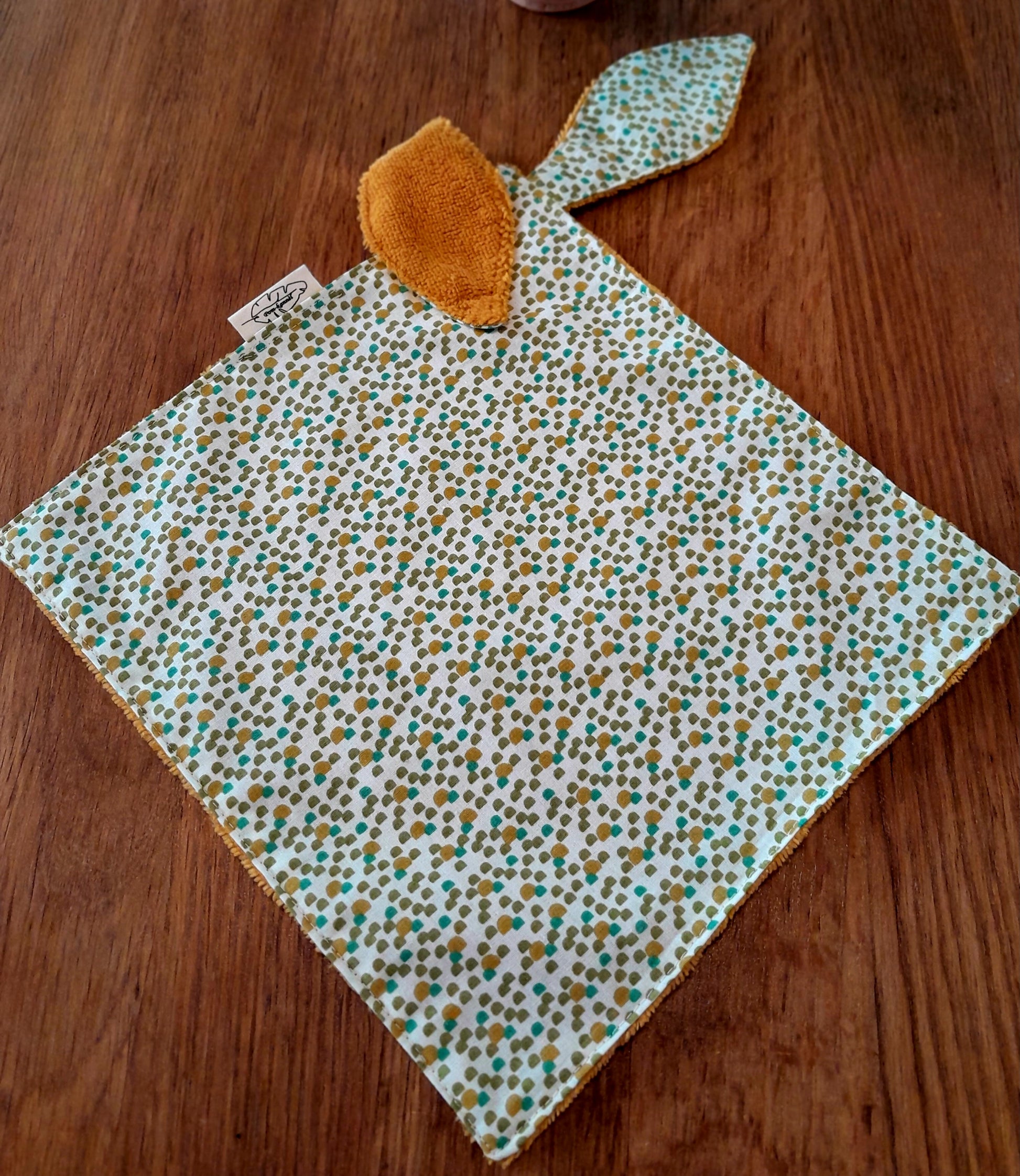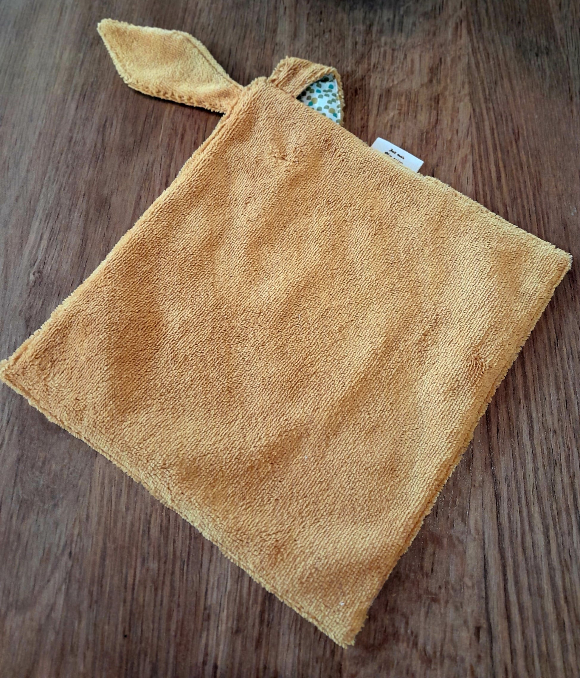 Découvrez ce doudou réconfortant aux oreilles souples et expressives, confectionné dans un délicat coton. Sa composition associe la douceur naturelle de l'éponge bambou de couleur moutarde, offrant une texture apaisante parfaite pour les moments de tendresse et de détente de votre enfant. Un compagnon câlin et bienveillant, conçu pour accompagner les plus petits avec douceur.