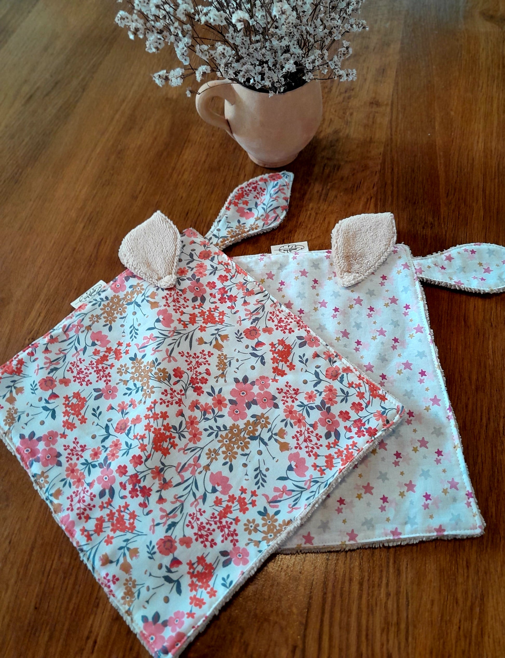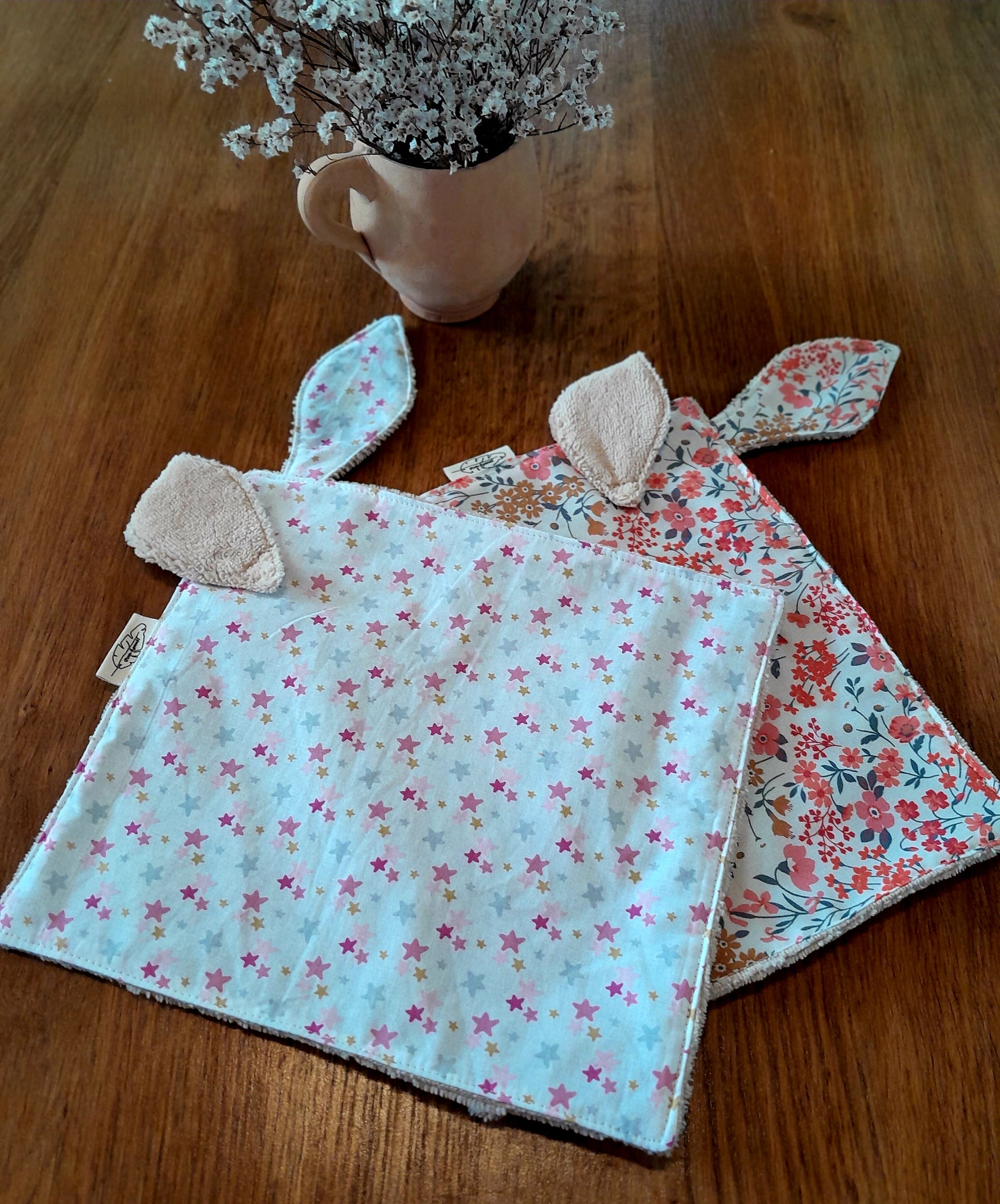 Découvrez ce doudou réconfortant aux oreilles souples et expressives, confectionné dans un délicat coton fleuri ou étoiles. Sa composition associe la douceur naturelle de l'éponge bambou de couleur beige, offrant une texture apaisante parfaite pour les moments de tendresse et de détente de votre enfant. Un compagnon câlin et bienveillant, conçu pour accompagner les plus petits avec douceur.