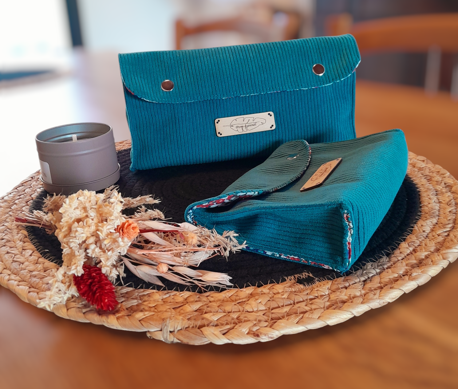 Vous cherchez un moyen pratique et élégant pour organiser vos affaires? Ne cherchez plus! Notre lot de 2 pochettes est parfait pour ranger vos papiers d'identité, votre maquillage et bien plus encore. Fabriquées en velours souple à l'extérieur et en tissu fleuri à l'intérieur, ces pochettes sont à la fois pratiques et stylées. Disponibles en deux tailles, elles s'adapteront à tous vos besoins. Couleur bleu canard.