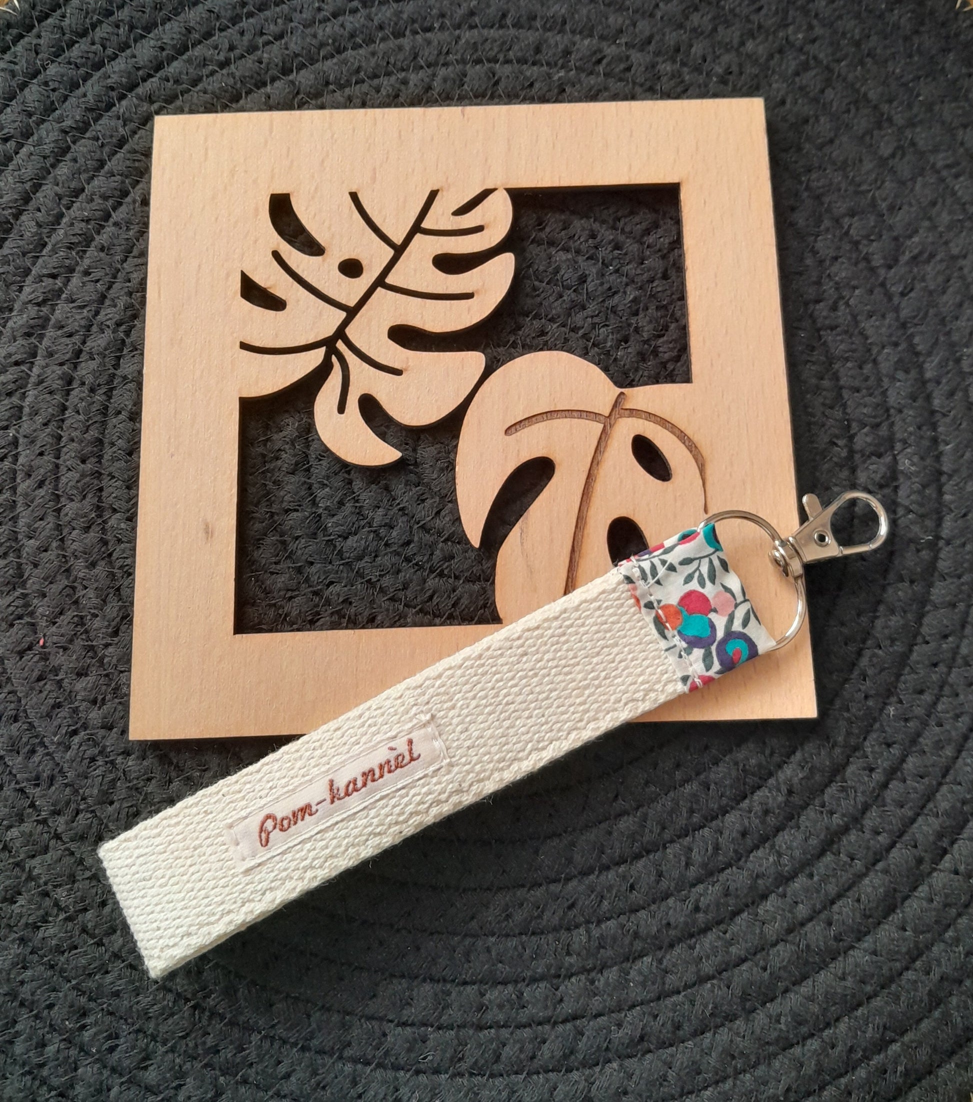 Ce porte-clés en coton, aux dimensions de 13 x 2,5 cm, est un accessoire fiable et pratique pour garder vos clés bien organisées. Sa texture et sa taille compacte vous assurent un usage confortable au quotidien, vous aidant à rester organisé sans effort.