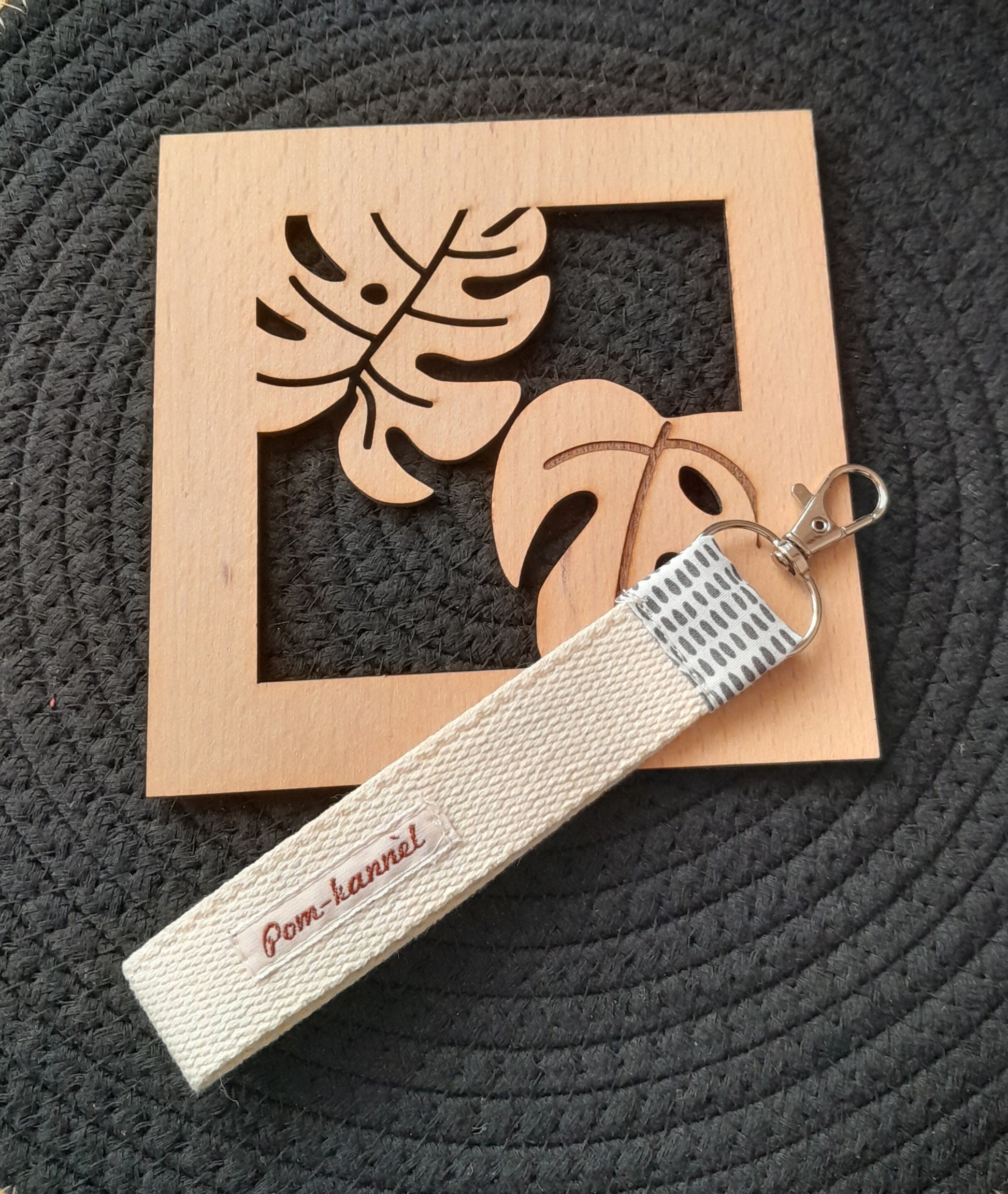 Ce porte-clés en coton, aux dimensions de 13 x 2,5 cm, est un accessoire fiable et pratique pour garder vos clés bien organisées. Sa texture et sa taille compacte vous assurent un usage confortable au quotidien, vous aidant à rester organisé sans effort.