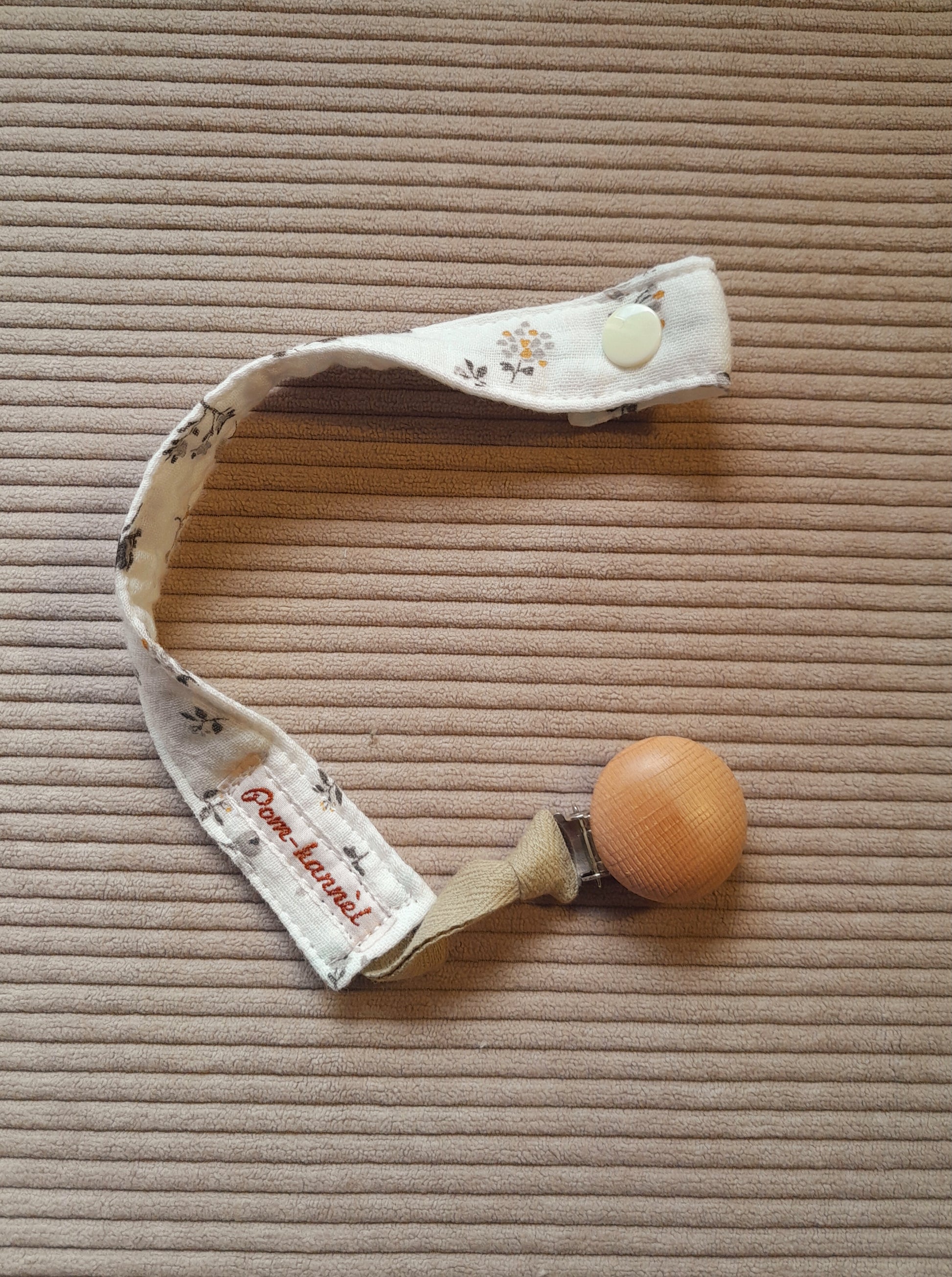 Notre attache tétine en gaze de coton fleuri est idéal pour votre bébé. Fabriqué avec un matériau doux et léger, il est à la fois pratique et élégant. Mesurant 30 cm, il offre une solution sûre pour garder la tétine de votre bébé à portée de main.