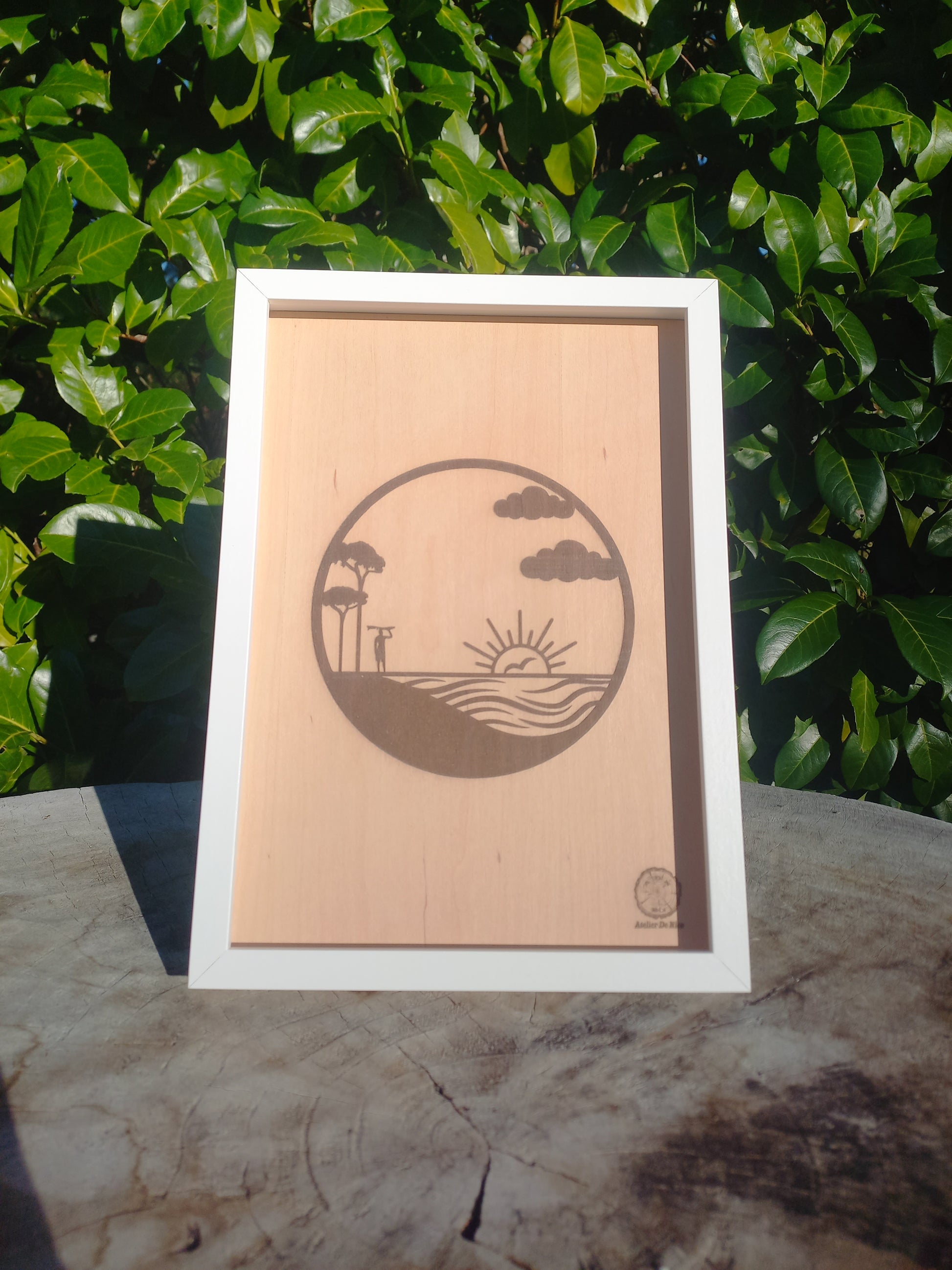 Ce cadre Sunset est doté d'une image gravée sur une feuille d'aulne pour un effet unique. Offrez-vous un décor original avec ce cadre blanc accroché au mur ou posé sur un meuble. Ajoutez une touche d'authenticité à votre intérieur. Dimensions 30 cm x 21 cm.