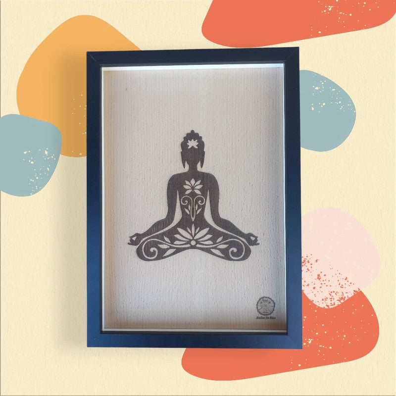 Cadre gravé sur une feuille de bois de hêtre représentant un motif zen. Disponible en noir, ce cadre peut être accroché ou posé sur un meuble. Ajoutez un élément apaisant à votre décoration intérieure avec ce cadre de 30cm x 21cm.